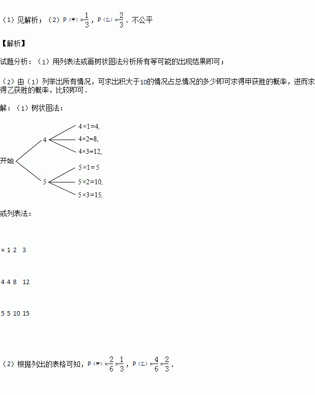(2)求甲、乙两人获胜的概率,并说明游戏是否公平.