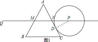 则∠BCP=∠CPM=90°,∠PC=∠ANM=60°,CP=$\sqrt{3}$,