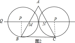 当⊙P于BC切于B点时,连接PB,