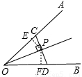 如图,P是∠AOB平分线上一点,CD⊥OP于P,并分别交OA、OB于C D,则CD_____点P到∠AOB两边距离之和.( )