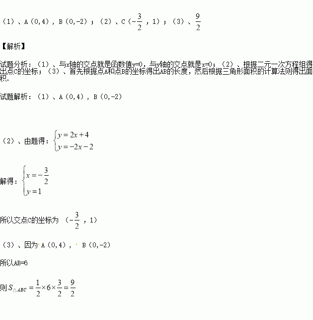 x+4与直线y=-2x-2.