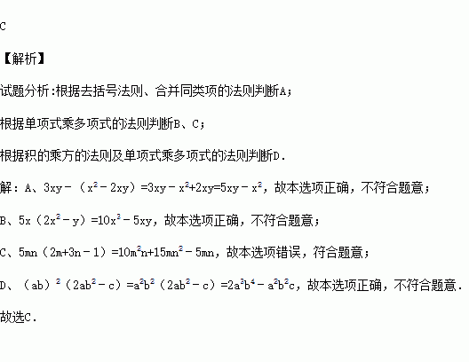 A.3xy﹣(x2﹣2xy)=5xy﹣x2
