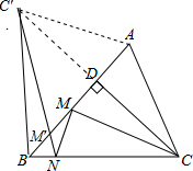 解答:解:作△ABC关于直线AB的对称△ABC′,C′是C的对称点,连接C′N交AB于M′,