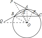 解答 证明:如图,作△ABC的外接圆⊙O,作OE⊥AB于E,OF⊥AC于F,连接OP、OQ、OB、OA,![]()
