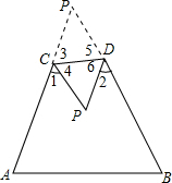分析 根据翻折变换的性质得到∠3=∠4,∠5=∠6,根据三角形内角和定理得到∠P=180°-(∠A+∠B),根据四边形内角和等于360°代入计算即可.