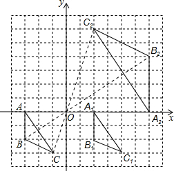 (2)以O点为位似中心,放大到2倍,在第一象限内画出△ABC的位似图形△A2B2C2即可;