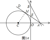 (2)若直线AB不动,圆C向x轴的正半轴移动到与直线AB相切时,设切点为N,如图1b所示,连接CN,由C的坐标确定出OC的长,由OA+OC求出AC的长,在△ACN中,设AN=x,则有AC=2x,根据勾股定理列出关于x的方程,求出方程的解得到x的值,确定出AC的长,由AC-OA求出OC的长,即可确定出圆心C的坐标;