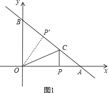 £¨2£©µ±µãP¹ØÓÚÖ±ÏßOCµÄ¶Ô³ÆµãP¡äÂäÔÚÖ±ÏßABÉÏʱ£¬Èçͼ1£¬![]()
