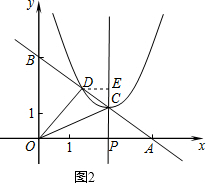 ¹ýµãD×÷DE¡ÍCPÓÚµãE£¬Èçͼ2£¬Ôò¡ÏDEC=¡ÏAOB=90¡ã£¬![]()