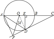 分析 (1)AF⊥CF,连接OD,由CD是⊙O的切线,得到OD⊥CD,根据等腰三角形的性质得到∠DAF=∠CAD,于是求得∠FAD=∠ODA,推出AF∥OD,结论即可得出;