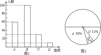 分析 (1)读图可得:A类有60人,占30%即可求得总人数;