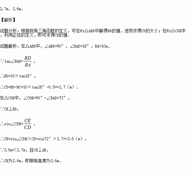 的长,并标明限制高度.(sin18°≈0.3090,cos18°≈0.9511,tan18°≈0.3249)(精确到0.1m)