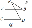 (2)如图③,过点E作EF∥AB,根据两直线平行,内错角相等可得∠D=∠DEF,∠B=∠BEF,再根据∠BED=∠DEF-∠BEF整理即可得证;