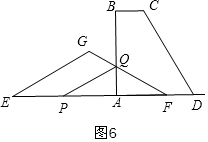 ①如图6,当PQ=FQ时,△FPQ是等腰三角形,![]()
