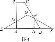 (2)分三种情况讨论:①当0≤x≤2时,如图3,重叠部分的面积为△AFM的面积,②当2<x≤$\frac{10}{3}$时,如图4,重叠部分的面积为五边形GMADN的面积,利用面积差求重叠部分的面积;③当$\frac{10}{3}$<x≤4时,如图5,重叠部分的面积为四边形ADNM的面积,同理可求得面积;