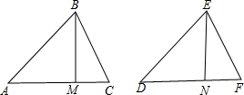 △ABC和△DEF中,AC=DF,AB=DE,BM⊥AC于M,EN⊥DF于N,BM=EN,