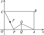 分析 (1)由四边形OABC是矩形,DQ⊥OA,易得∠COP=∠PQD=90°,且将线段CP的中点绕点P按顺时针方向旋转90°得点D,根据等角的余角相等,可得∠OCP=∠DPQ,则可证得:△COP∽△PQD;