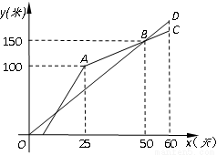 甲、乙两个工程队共同修建一条乡镇公路,甲队按一定的工作效率先施工,一段时间后,乙队从另一端按一定的工作效率加入施工,中途乙队遇到山坡路段,工作效率降低,当乙队完成山坡路段时恰好公路修建完成,此时甲队工作了60天,设甲、乙两队各自修建的公路的长度为y(米),甲队工作时间为x(天),y与x之间的函数图象如图所示.