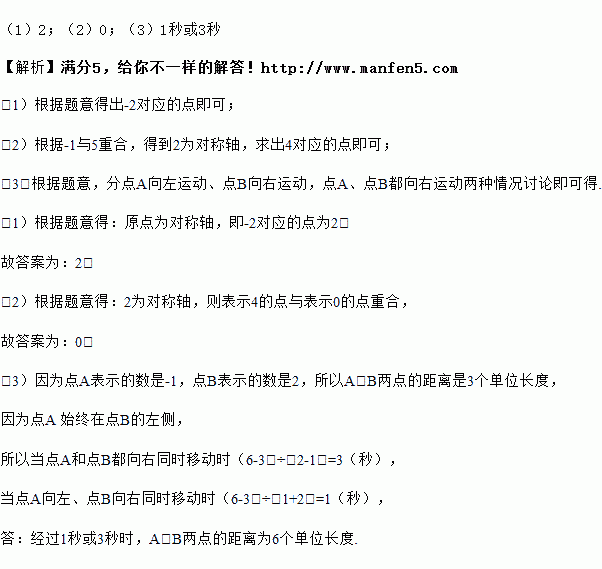 (2)折叠数轴,若-1表示的点与5表示的点重合,则4表示的点与 表示的点重合;