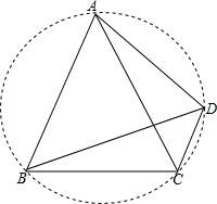 分析 根据等腰三角形的性质和三角形的内角和得到∠ABC=∠ACB=$\frac{180°-∠BAC}{2}$=90°-$\frac{1}{2}∠$BAC,由已知条件和对顶角相等得到∠BAC=∠CDB,于是得到A,B,C,D四点共圆,根据圆周角定理即可得到结论.