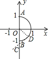 分析:b的值就是直线与y轴的交点的纵坐标,切直线当直线经过B时,一定同时经过点(1,0),再求出直线与圆在第四象限部分相切时b的值,即可写出b的取值范围.