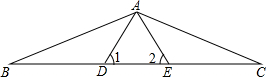 已知:如图,BC上有两点D、E,且BD=CE,∠1=∠2,