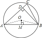 分析 连结OA、OB.根据等腰三角形的性质得出∠BOM=$\frac{1}{2}$∠AOB,AM=BM=$\frac{1}{2}$AB,由圆周角定理得出∠C=$\frac{1}{2}$∠AOB,那么∠C=∠BOM.再利用ASA证明△BCD≌△BOM,根据全等三角形对应边相等得出BD=BM,则BD=$\frac{1}{2}$AB,由sin∠CAB=$\frac{BD}{AB}$=$\frac{1}{2}$,求出∠CAB=30°.