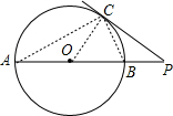 分析:连接BC,OC,AC,证△PCB∽△PAC,推出∠PCB=∠A=∠ACO,∠CBA=∠OCB,根据圆周角定理求出∠ACB=∠ACO+∠OCB=90°,推出∠OCP=90°,根据切线的判定推出即可.