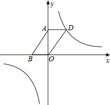 (2)如图,若该反比例函数的图象经过?ABOD的顶点D,点A、B的坐标分别为(0,3),(﹣2,0).
