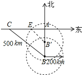 ∴AC=$\sqrt{B{C}^{2}-A{B}^{2}}$=$\sqrt{50{0}^{2}-30{0}^{2}}$=400(km),