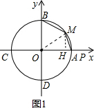 解答 解:(1)连接OM,过点M作MH⊥x轴于H,如图1,![]()