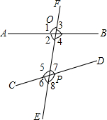如图,直线AB,CD与直线EF分别交于点O,P.