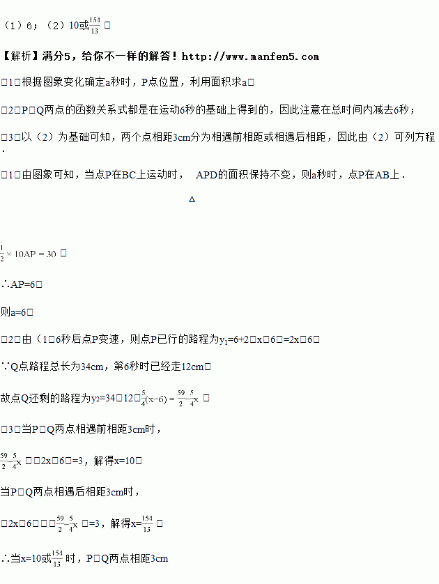 cm(P、Q两点速度改变后一直保持此速度,直到停止),如图2是△APD的面积s(cm2)和运动时间x(秒)的图象.