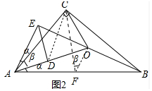 理由:如图2中,取AB中点F,连接CD、CF、OF.设∠DAB=∠EAC=α,∠CAD=β.![]()