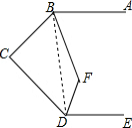 分析 连接BD,再根据三角形内角和定理得出∠C+∠CBD+∠CDB=180°,再由BC⊥CD可知∠C=90°,故∠CBD+∠CDB=90°,再由AB∥DE可知∠ABD+∠CDE=180°,故∠CBD+∠CDB+∠ABD+∠CDE=90°+180°=270°,再由∠ABC和∠CDE的平分线交于点F可得出∠CBF+∠CDF的度数,由四边形内角和定理即可得出结论.