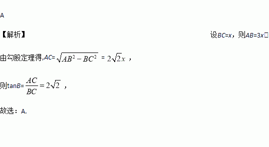 如图,在△ABC中, ∠A= 30°∠C=90°,若BC=10,则AB的长度为( )