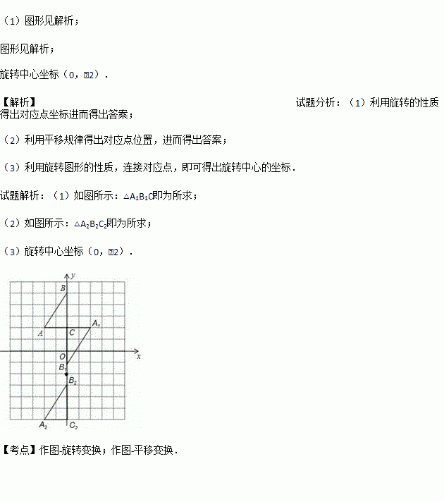 (3)若将△A1B1C绕某一点旋转可得到△A2B2C2,请直接写出旋转中心的坐标___________.