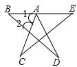 由三角形外角的性质,得∠C+∠E=∠1,∠A+∠D=∠2,