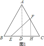 (2)作FH⊥BC于H,如图1,CE=x,则CF=8-x,![]()