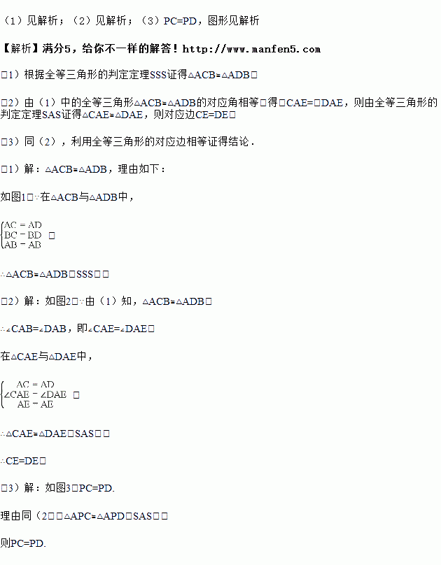 小明和小亮在学习探索三角形全等时,碰到如下一题:如图①,若AC=AD,BC=BD,则△ACB与△ADB有怎样的关系?