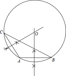 分析:AB和AC的中垂线的交点O就是圆心,则以O为圆心,以OA为半径作圆即可.