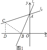 解答 (1)解:过点B作BC⊥AB于点B,交l2于点C,过C作CD⊥x轴于D,