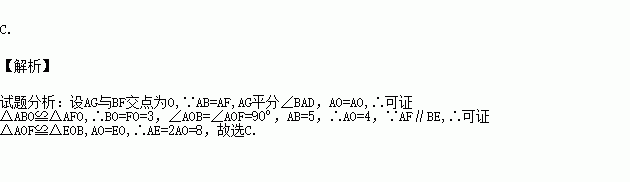 如图,在□ABCD中,用直尺和圆规作∠BAD的平分线AG交BC于点E,若BF=6,AB=5,则AE的长为( ).