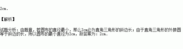 角形两直角边长分别为1cm和2cm,若用同色圆形布将此洞全部覆盖,那么这个圆布的直径最小应等于 .