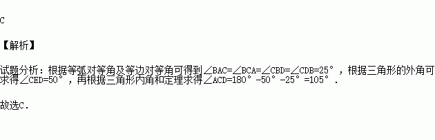 如图,在⊙O中,弦AC、BD交于点E,弧AB=弧BC=弧CD.若∠BDC=25°,则∠ACD等于
