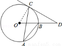 如图,AB、AC是⊙O的两条弦,∠BAC=25°,过点C的切线与OB的延长线交于点D,则∠D的度数为( )