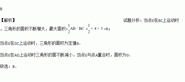 如图,矩形ABCD中,AB=4,BC=3,动点E从B点出发,沿B﹣C﹣D﹣A运动至A点停止,设运动的路程为x,△ABE的面积为y,则y与x的函数关系用图象表示正确的是( )