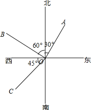 分析 根据方向角画出图形即可.用方位角描述方向时,通常以正北或正南方向为角的始边,以对象所处的射线为终边,故描述方位角时,一般先叙述北或南,再叙述偏东或偏西.