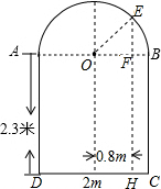解答 解:∵车宽1.6米,∴卡车能否通过,只要比较距厂门中线0.8米处的高度与车高.在Rt△OEF中,由勾股定理可得:EF=$\sqrt{O{E}^{2}-O{F}^{2}}$=$\sqrt{1-0.{8}^{2}}$=0.6(m),EH=EF+FH=0.6+2.3=2.9>2.5,∴卡车能通过此门.