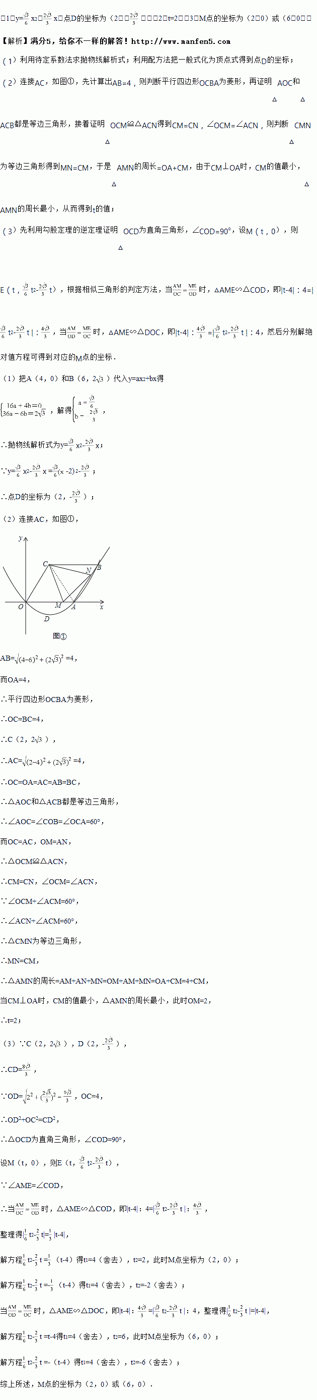 £¨3£©Èçͼ¢Ú£¬¹ýµãM×÷ME¡ÍxÖᣬ½»Å×ÎïÏßy=ax2+bxÓÚµãE£¬Á¬½ÓEM£¬AE£¬µ±¡÷AMEÓë¡÷DOCÏàËÆÊ±£®ÇëÖ±½Óд³öËùÓзûºÏÌõ¼þµÄµãM×ø±ê£®